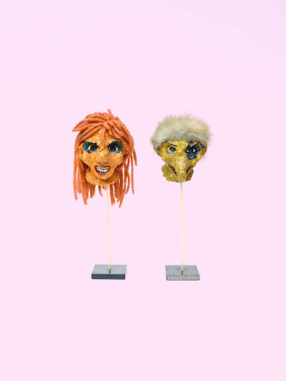 Die Puppen habe ich irgendwann gebastelt. Mit den Stoffen der Kostüme von unserem Kennenlernen – die gibt es schon nicht mehr. Die Haare stammen von unseren damaligen Perücken – Hexe und Räuber. Die Puppen sind immer mit uns gewandert. Jedes Mal, wenn wir umgezogen sind, haben wir sie mitgenommen.